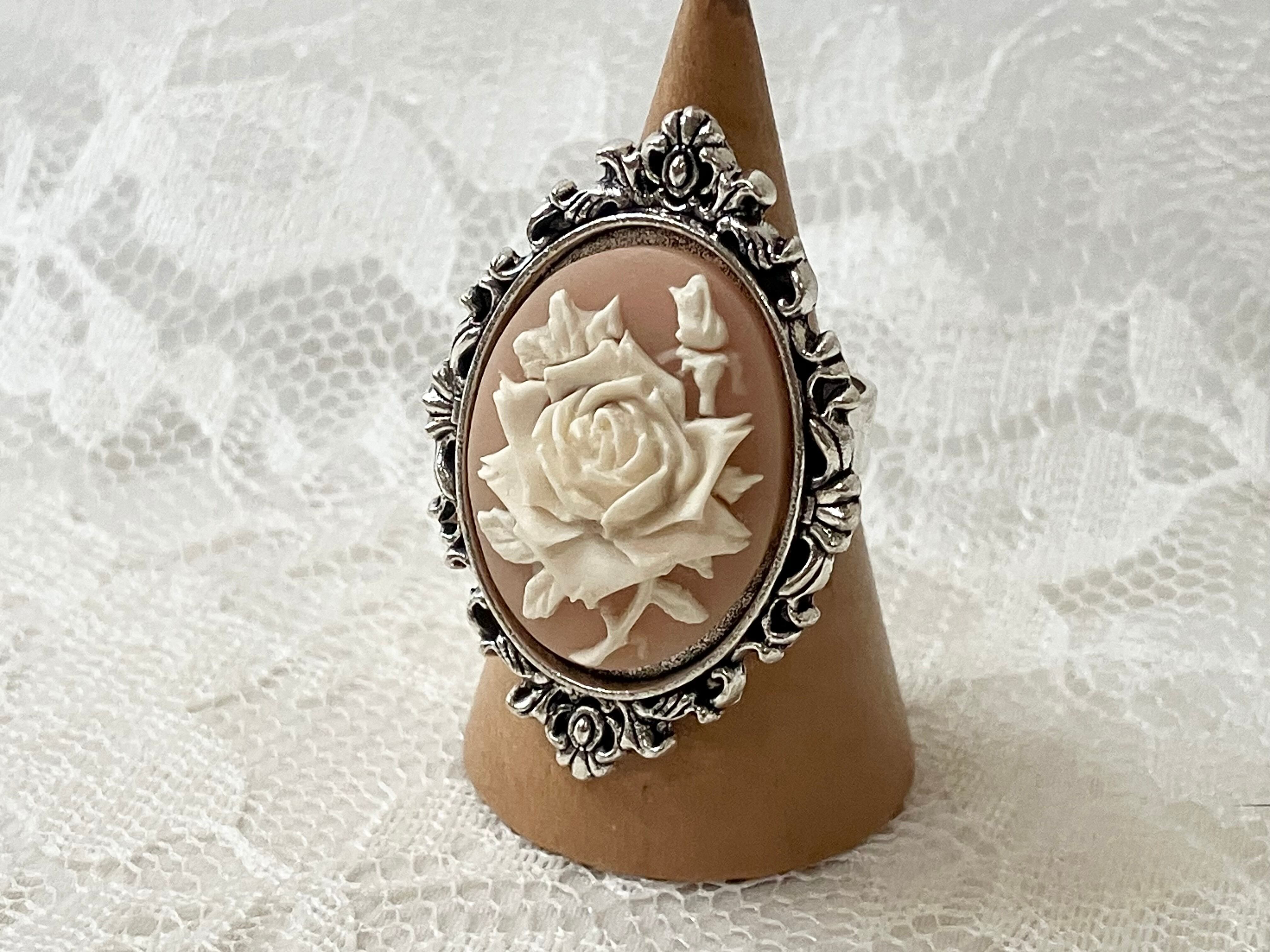 クラシカルなくすみカラーの薔薇カメオのリングです。