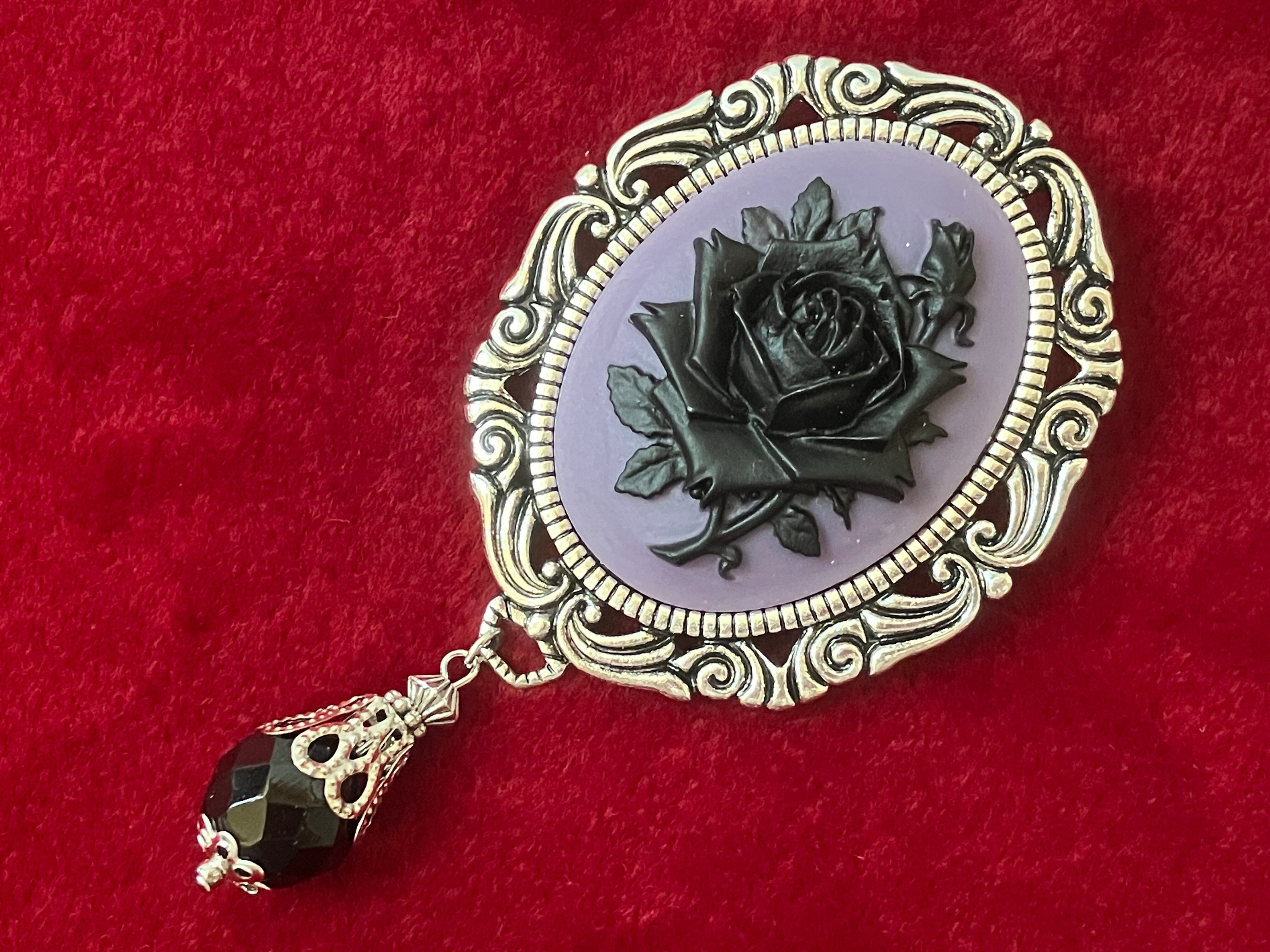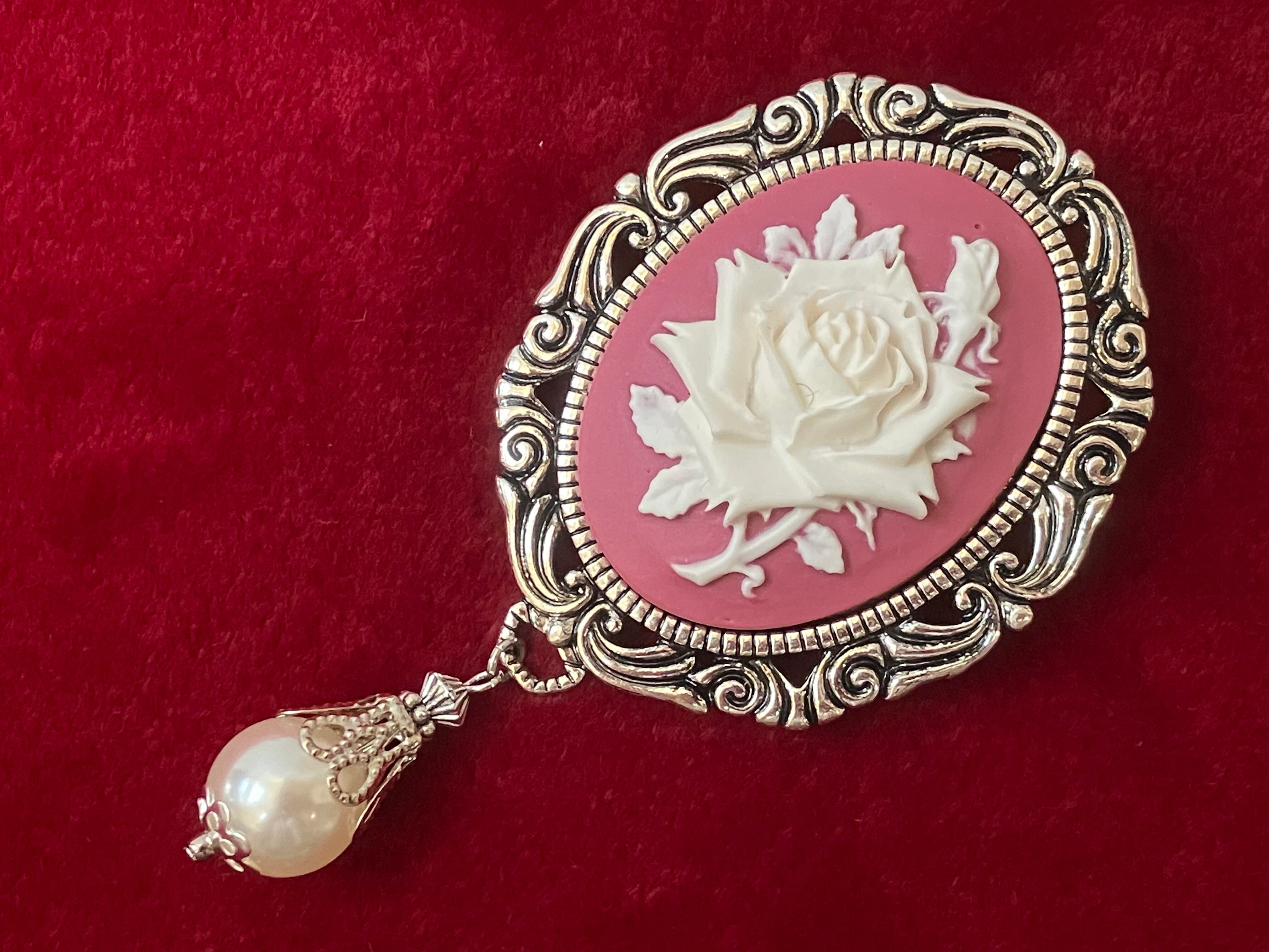 繊細な造形の、インポートのアクリル製カメオのブローチです。