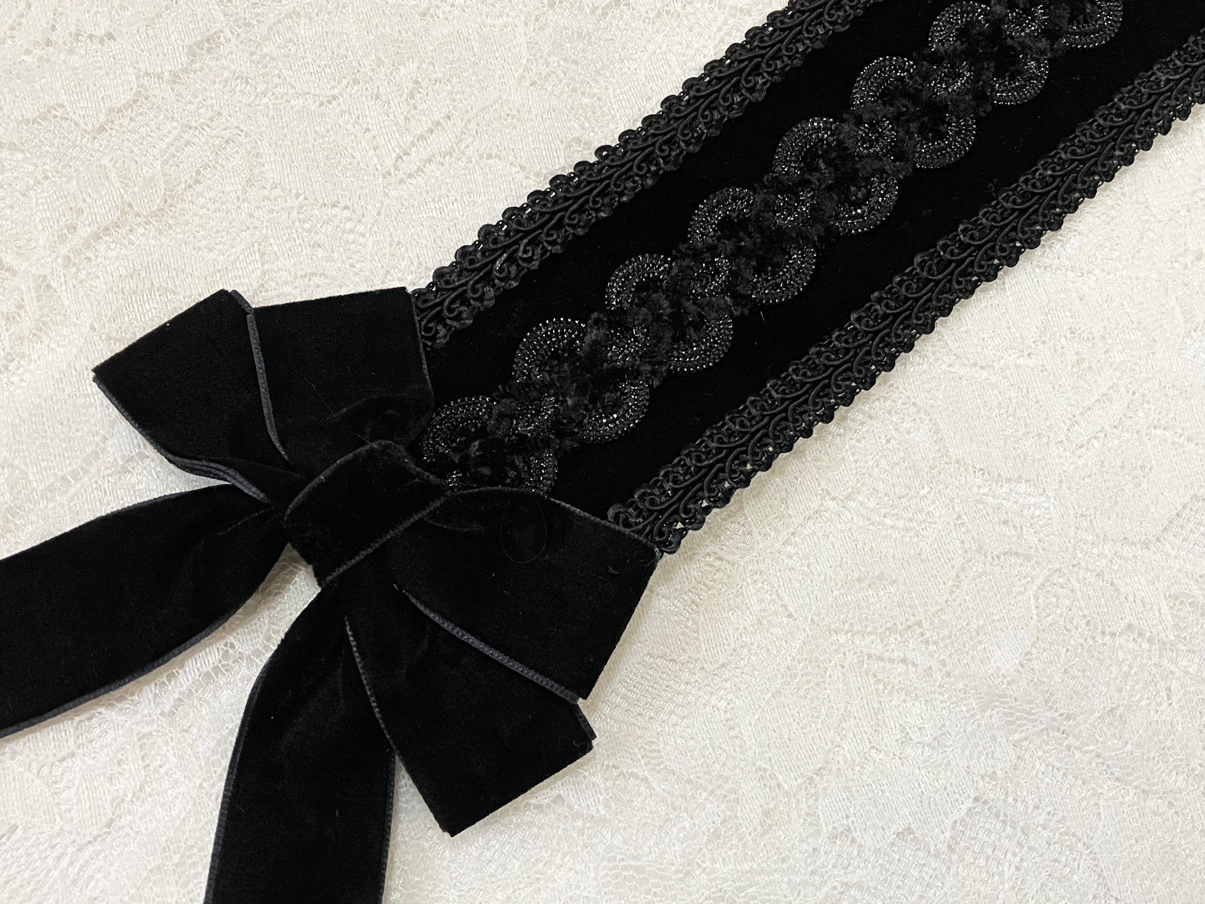使用素材:ベロアリボン、レーヨンブレード、金具