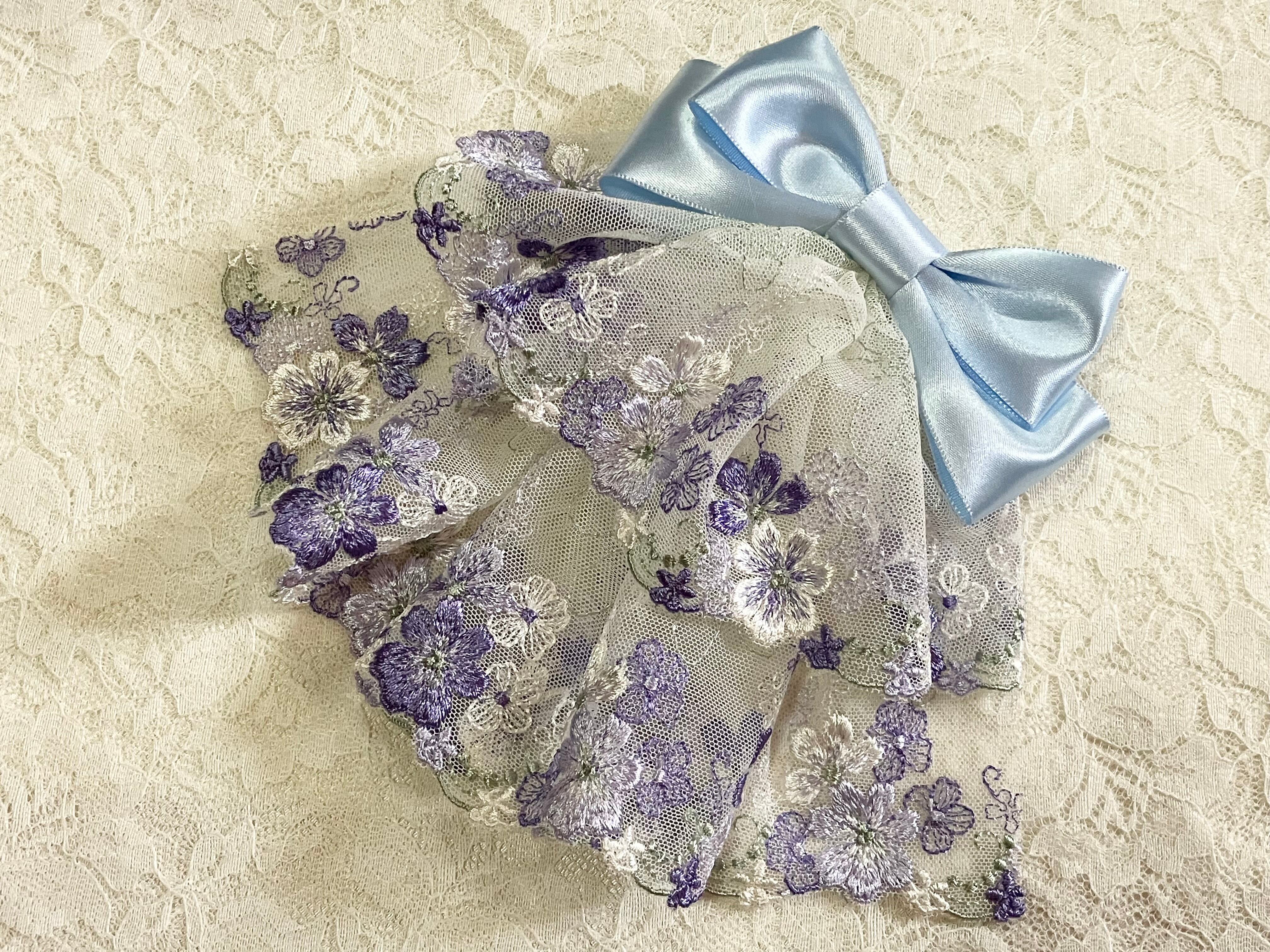 フラワー柄のチュールレースを2段仕立てにしたジャボクリップです。